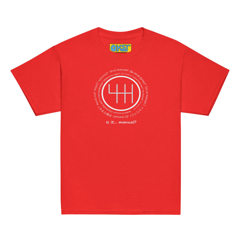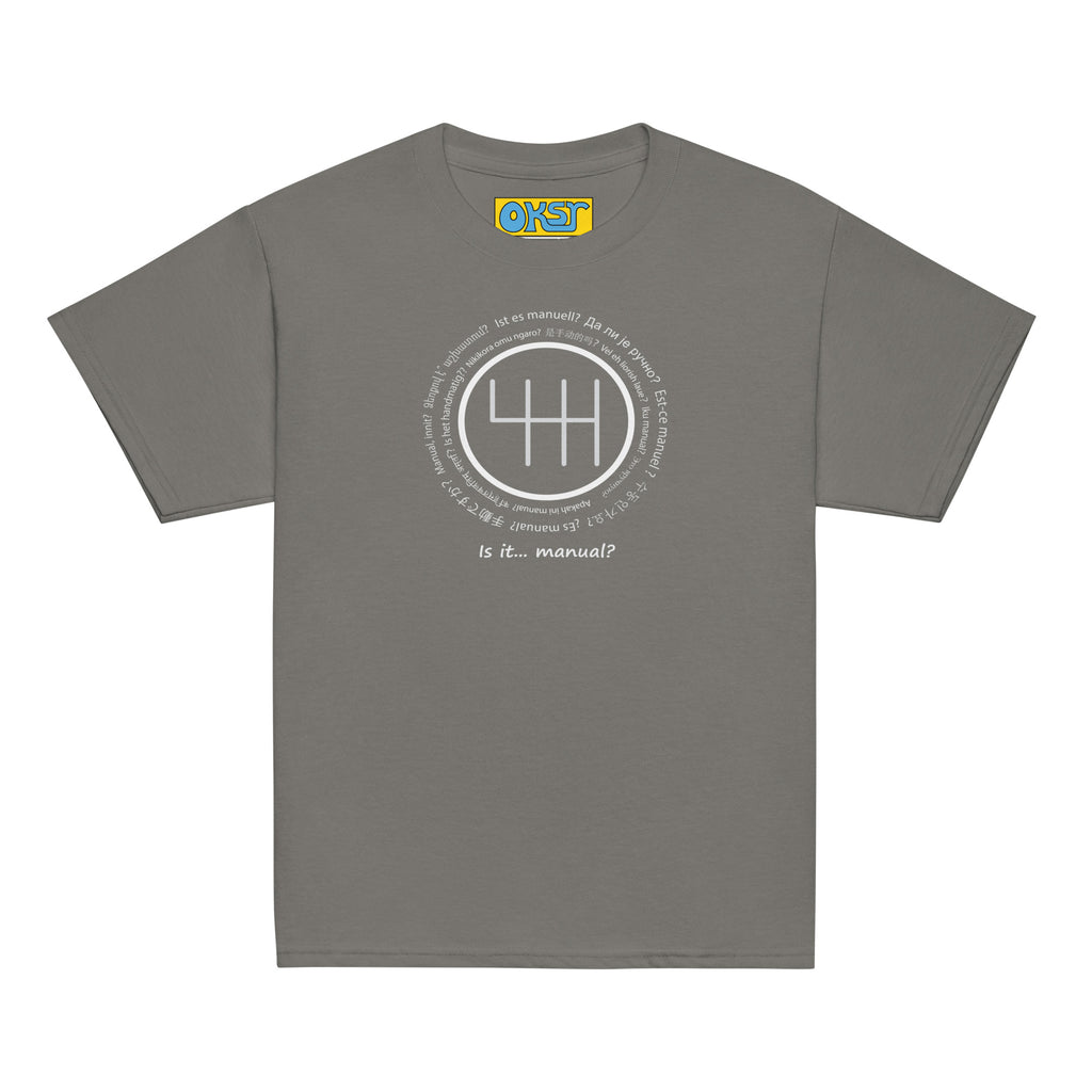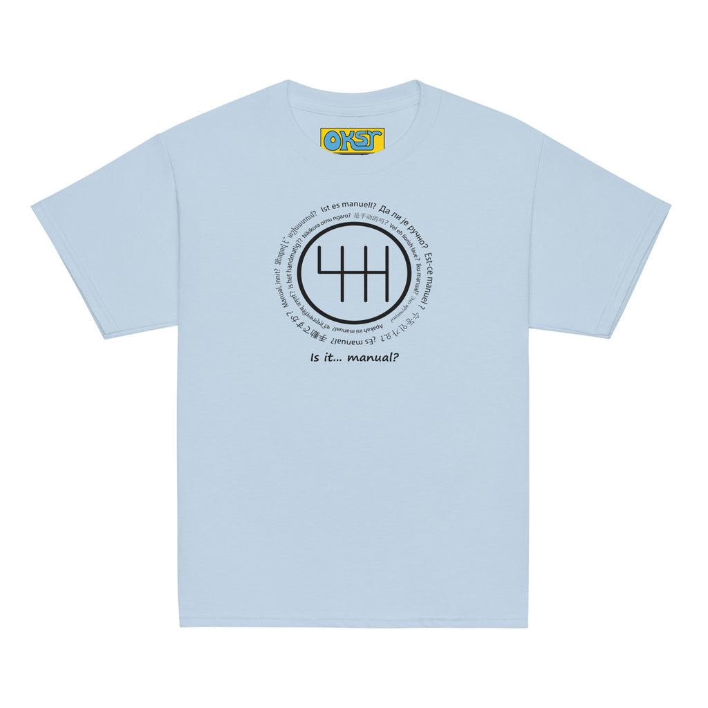 It's the question that strikes fear and shame in the hearts of automatic transmission owners. A dreaded confession. The pride of the stick-shift tribe. It's the first question every car guy or auto gal asks about your ride, if they're going to ask at all. Whether a source of shame or pride, defuse the tension with our Is It Manual? tee.
