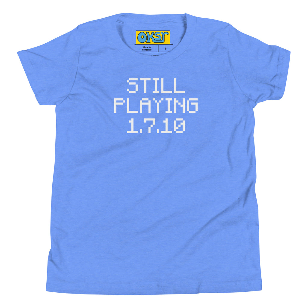 Here at OkSure Tees, we’re still playing 1.7.10. And who could blame us?! It’s still the best version for Ultra Modded Survivalists. After all, who needs updates when there’s mods, mods, mods, mods, and even more mods? Not you- you’re an OG, and you appreciate the classics. Show your cultured side with our retro-MC themed tee. And turn on shaders!